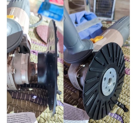 Первое впечатление производит хорошее - приятное качество изготовления. Но на УШМ установить не смог, буртик оси не провалился сквозь шайбу, а в таком виде гайка не закручивается. На второй УШМ так же. И только на третьей (аккумуляторная CAT, если что) сопряжение прошло успешно, гайка полностью закрутилась, а шайба плотно села на буртик оси. В работе опора показала себя хорошо, биений нет. P.S. Если бы не подошло ни на одну УШМ - рассверлил бы отверстие немного