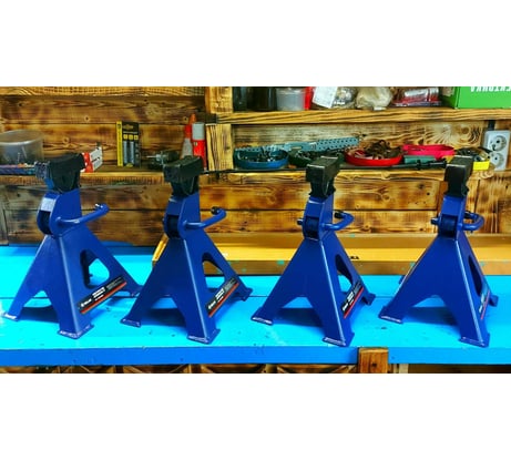 Хорошие подставки, но высоковаты! Выбирал самые низкие из этой категории и всё равно - обычный тойотовский легковой домкрат надо выкручивать на максимум чтобы их подсунуть в самом нижнем положении! Если бы взял другие, чуть повыше - то пришлось бы уже подкладывать что-то под домкрат.
