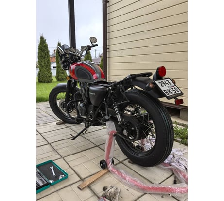 Подкат до конца не защелкивается, вся нагрузка на колёсах. При толчке может уронить мотоцикл, приходится под колеса подката подкладывать досочку для страховки.
