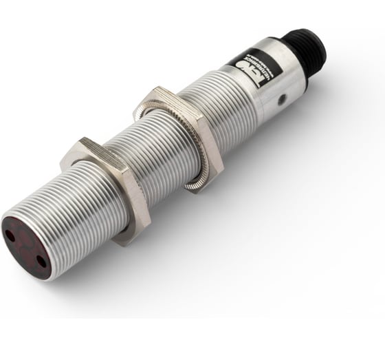 Датчик имеет излучатель и приемник, встроенные в корпус. Луч света инфракрасного спектра от излучателя попадает на объект и, отражаясь от него, попадает в приемник, вызывая изменение выходного сигнала датчика.