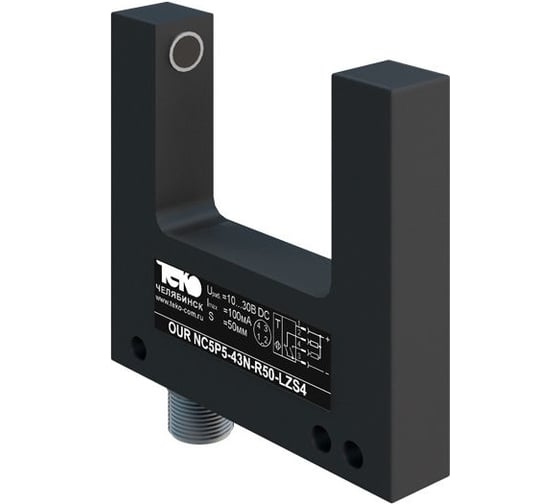Щелевой оптический датчик OU NC5P-43P-50-LZS4 состоит из приемника и излучателя, расположенных в одном корпусе и расположенных друг на против друга.
