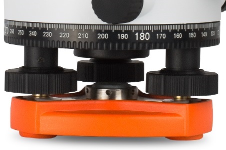 Плавная регулировка Положение инструмента относительно горизонта плавно регулируется при помощи трех опорных винтов. |