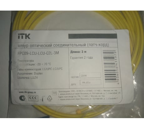 Оптический патч-корд IEK ITK SM 9/125 OS2, LC/UPC-LC/UPC, Duplex, 3м FPC09-LCU-LCU-C2L-3M