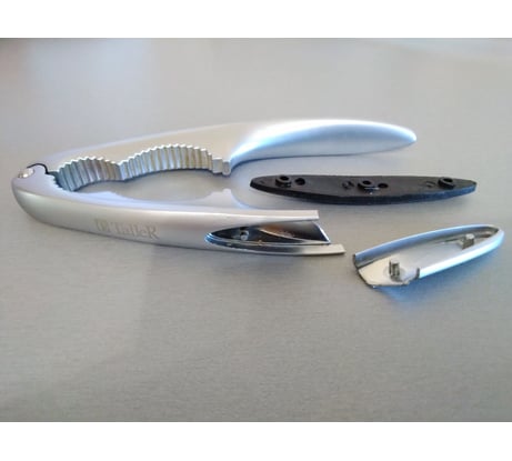 Размеры: 16 х 4,5 х 1,5 см. Универсальный орехокол, подойдет для разных размеров орехов. Отлично справляется с грецкими орехами и с фундуком. Стильный внешний вид, качество изготовления и красивое матовое покрытие. Рифленая силиконовая накладка на рукояти обеспечивает удобный хват и предотвращает выскальзывание. Выполнен из качественного цинкового сплава. На практичном матовом покрытии не остается отпечатков пальцев.
