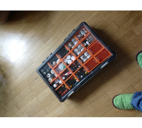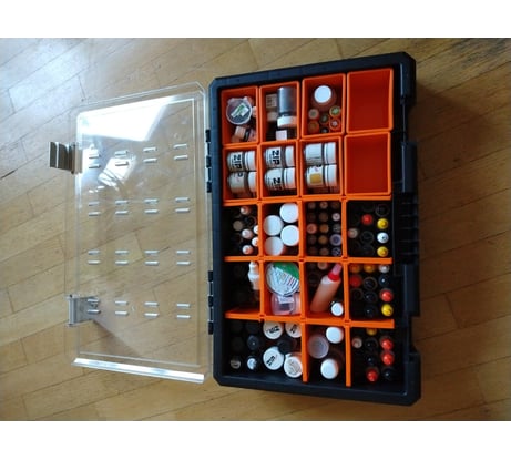 ОГРОМНЫЙ МИНУС неплотное прилегание крышки , все что посередке вываливается , мелочь не положишь. Лотки крепятся по дурацки а и за неплотной крышки ещё и вываливаются. А наклейка это что то с чем то спрашивается зачем прозрачная крышка если наклейка не отклеивается .