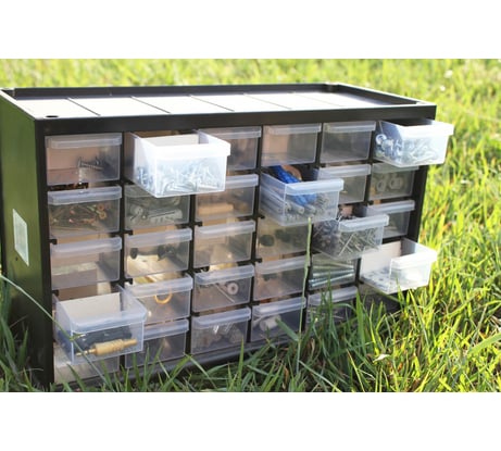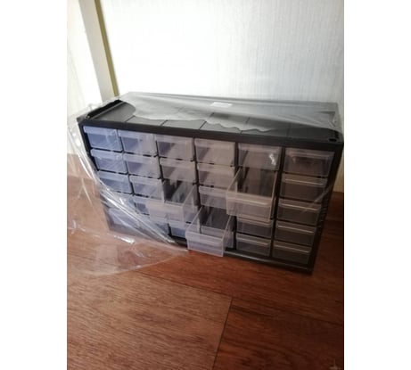 Отличный органайзер для крепежа и прочей мелочи. Брал в дополнение к двум "младшим" моделям данного органайзера, собрал их в одну "башню". Удобно что есть ограничители выдвижения лотков, а также возможность вставить разделители как в малые лотки так и в большие.