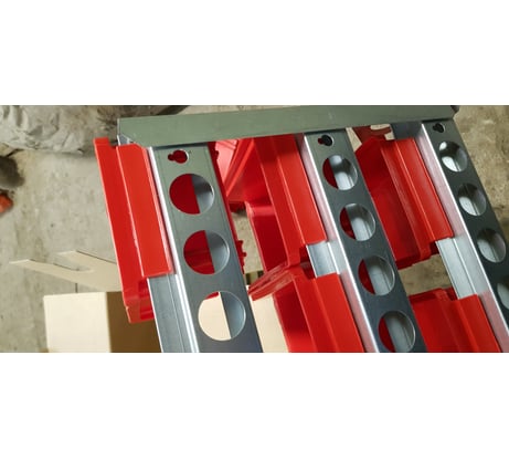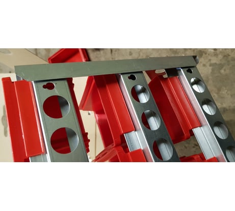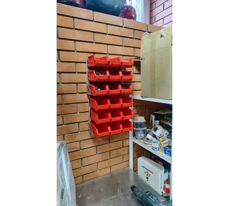 Отличный органайзер, жёсткий каркас и достаточно крепкие лотки. При полном лотке саморезов пластик остаётся жёстким, без деформаций, висит на основании надёжно.