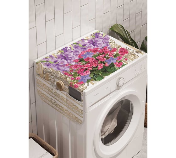 Органайзер для хранения Ambesonne "Золотые полосы с букетом" на стиральную машину, 45x120 см, cwm_4850