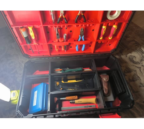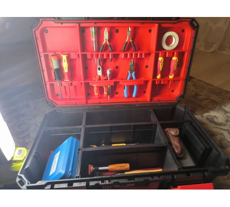 Отличный крепкий ящик для инструментов. Великолепный дизайн и функциональность,включая органайзер внутри в крышке для мелкого инструмента. В целом крепкая конструкция с нормальными петлями. Надёжные замки с возможностью повесить, для исключения чужого проникновения, навесной замок.