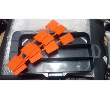 Сделан аккуратно, облоя нет, 25 секций. Есть замки и петли, именно петли а не линия сгиба, которая образуется после отливки одновременно крышки и корпуса и от частого использования просто рвется. Крышка открывается полностью, при этом это не всегда достоинство, в полностью открытом виде занимает банально больше места, петля для подвеса тоже на любителя.
