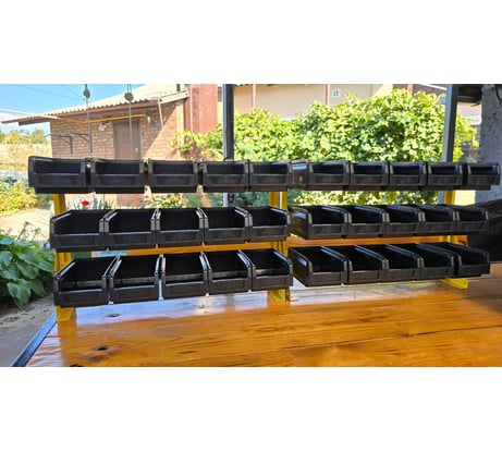 Отличный органайзер, пойдёт на замену моим старым пластиковым кейсам, которые не совсем удобные оказались, в видео все постарался рассказать. Для гаража отличное решение в виде лотков. Лотки из нормального пластика. Один лоток пролежал всю ночь в морозилке, остался такой-же эластичный. Для холодного гаража отличный набор. В комплекте маркет, трафарет чтобы подписать, и стикеры для вложения в лоток. Скоро предстоит ремонт в гараже, новый органайзер будет как раз подстать. По качеству все отлично, нареканий нет. Цепляются легко, как и снимаются. Покраска тоже хорошая.