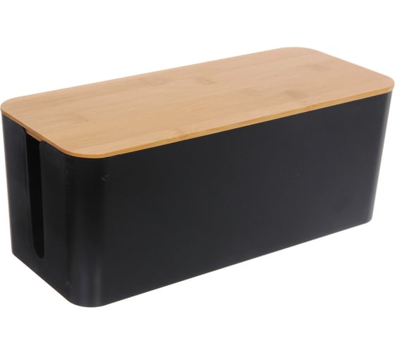 Органайзер для проводов с бамбуковой крышкой Селфи ДОМАНИЯ, цвет чёрный, для удлинителей на 5 розеток, 32*13*13,5см 684-0632