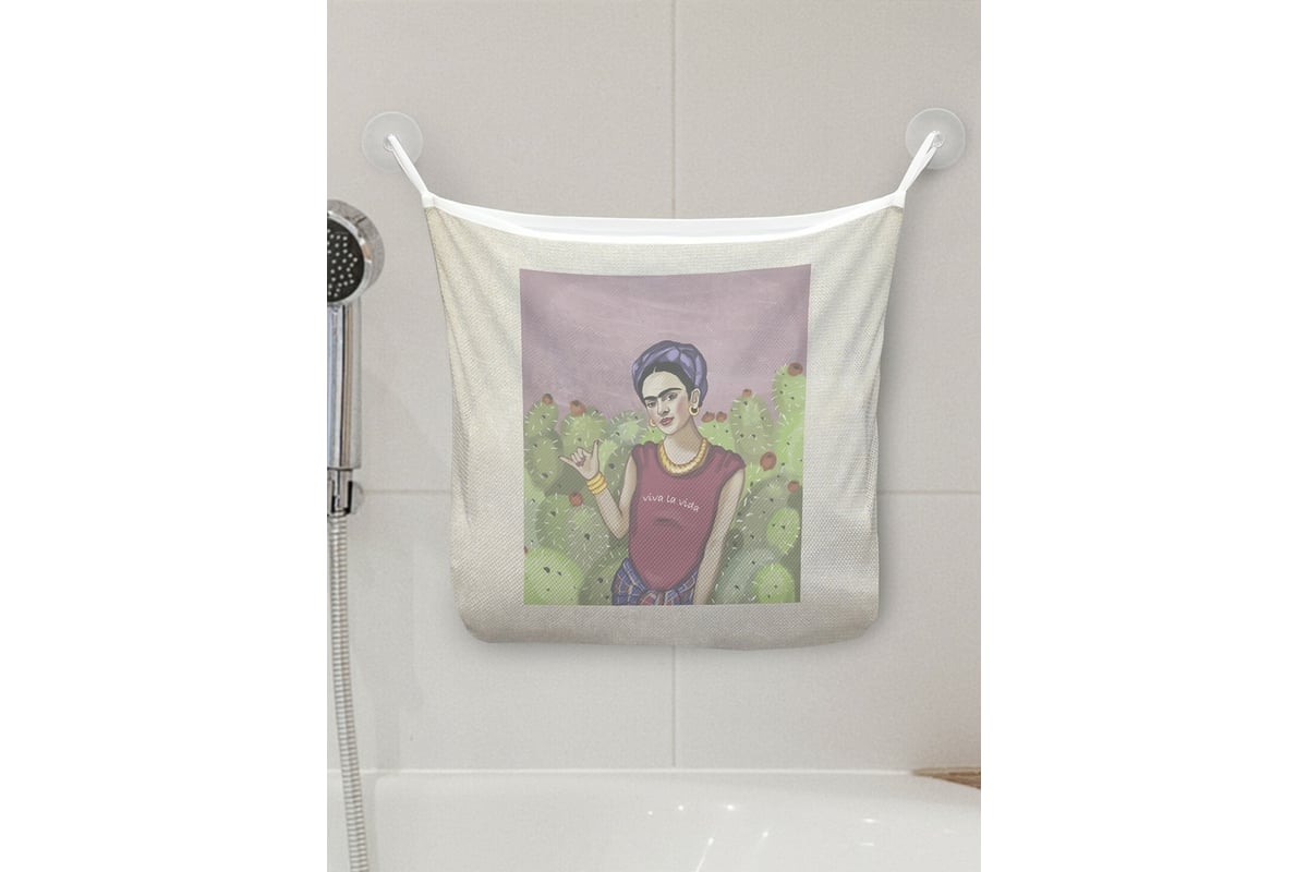 Органайзер для ванной - Сетка настенная на присосках для игрушек JoyArty "Тусовая Фрида в рамке", 39x33 см, tgb_378644