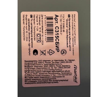 Отзывы об органайзере для зубных щеток Martika "Эллиса" серо-бирюзовый С315СБИР