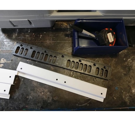 Аккуратный метизник. В гараже при температуре -20 пластик остается еще гибким. Думаю, прослужит долго. В комплекте дюбельки, трафарет, маркер. В подарок закинули рулетку)