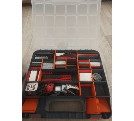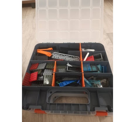 Отличный органайзер, надежные петли и замок. Брал под размер детского шкафа. Надоели старые порванные коробки от конструктора. И при этом не хотелось все детали сваливать в кучу. Поэтому взял 4 секционных органайзера. Лишние секции вырезал (для крупных деталей).