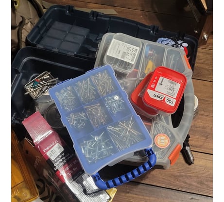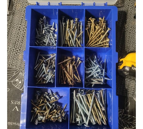 Удобно переносить, так как есть ручка. Переложил всё из коробочек. Получилось убрать всё до длины метизов в 65 мм. Может и 70 мм поперёк войдёт в большие отделения.