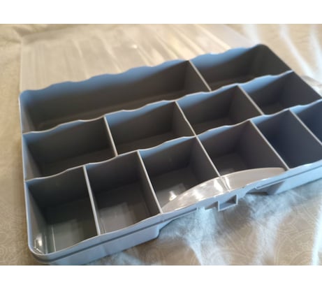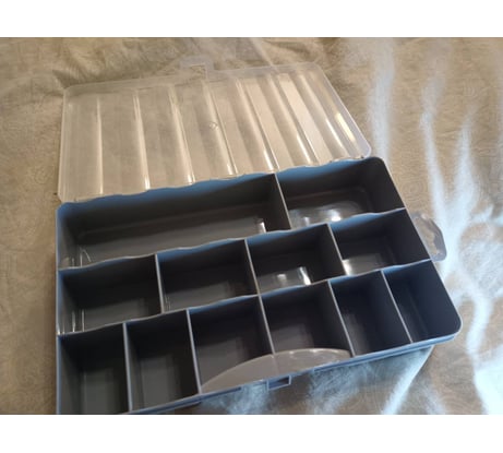 Хорошее пластиковое место для хранения разных мелочей. Отделения разной величины очень удобны. Крышка закрывается надёжно. Полупрозрачная крышка позволяет догадаться что лежит внутри (иногда открывать не нужно) Если аккуратно пользоваться прослужит не один год! Жаль что цена так быстро растёт. Брал чуть дороже двухсот рублей.