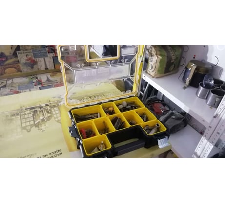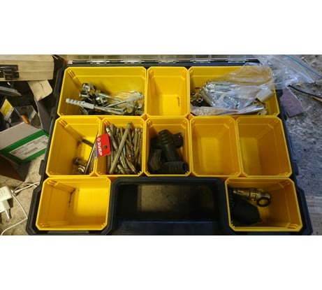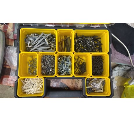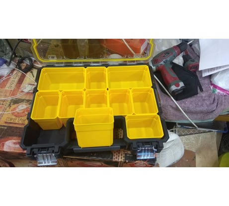 Мощные органайзеры. Треснул один из 10 и то на него упала пила. Крепкий. Единственное не влезают отвертки и длинные инструменты. А так вещь идеальная.