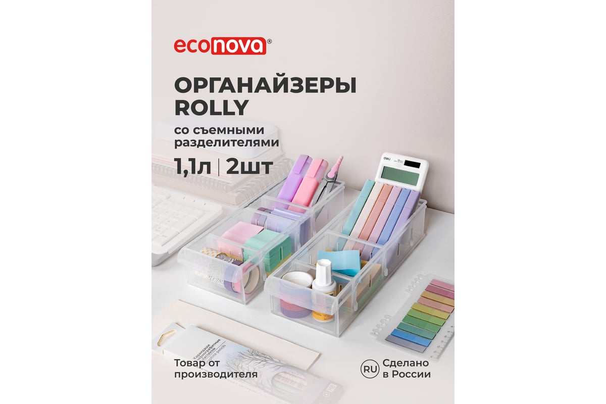 Органайзеры для хранения косметики, канцелярии, белья, вещей Econova 1.1л, 2шт, пластиковый, контейнер с перегородками, без крышки, прозрачный 43526320122