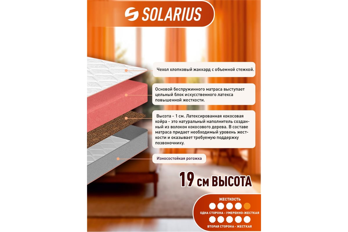 Ортопедический матрас Solarius Лагуна 19 hard 120x190 см ms-laguna19hard-120190