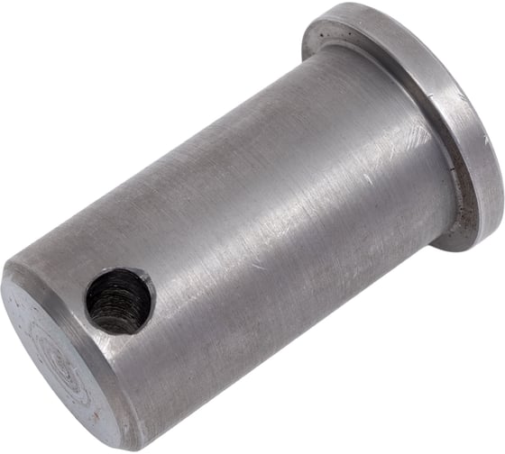 Ось с головкой и отверстием под шплинт – это гладкий цилиндрический стальной палец (ось) с низким бортиком и сквозным отверстием для шплинтования. Данный крепежный элемент предназначен для точного совмещения компонентов машин, предотвращения смещения элементов конструкций или в качестве запирающей детали при сборке различных приспособлений.