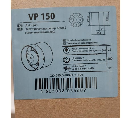 Осевой канальный вытяжной вентилятор AURAMAX VP 150 D 150 90-01376 На страницу товара1 180 ₽