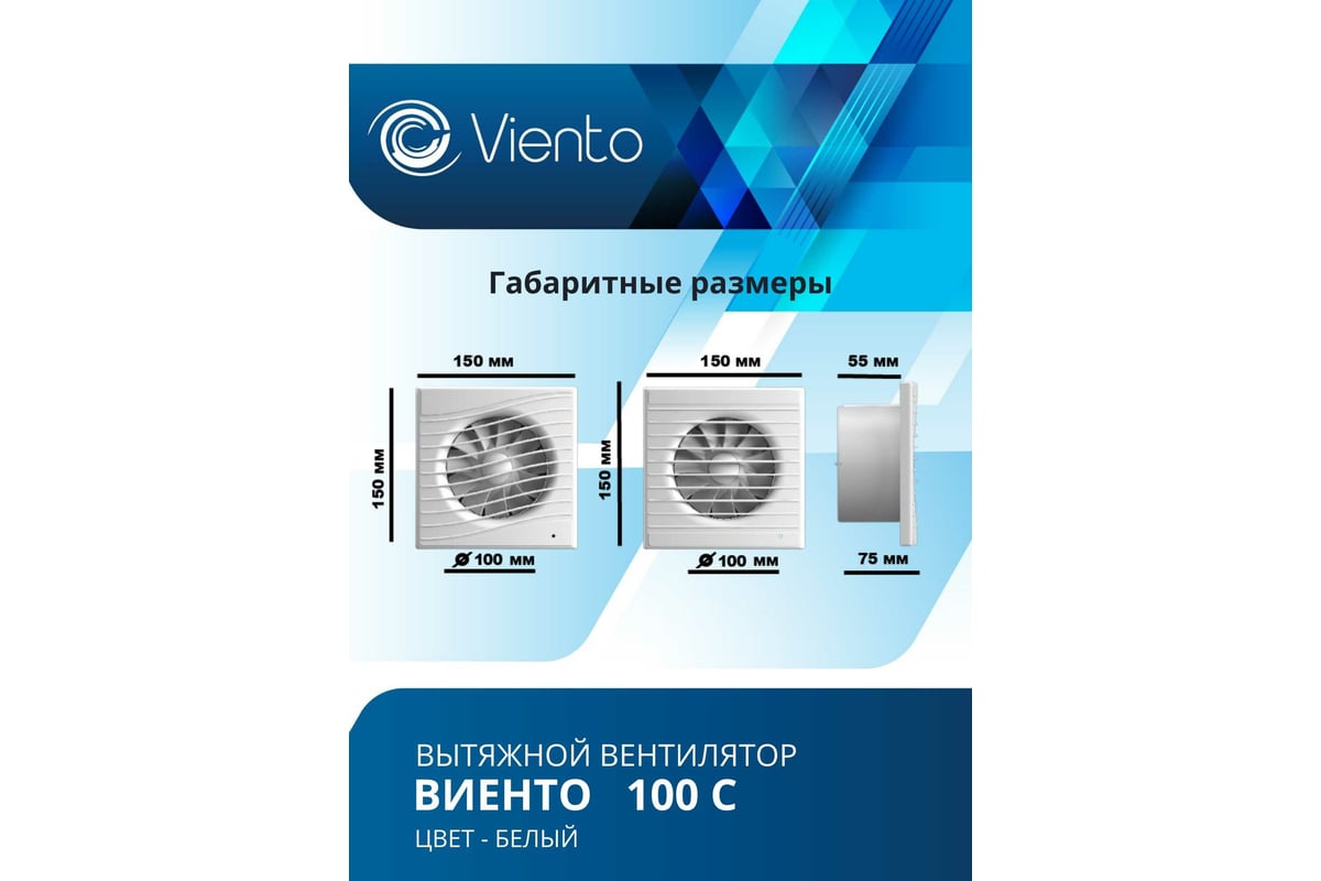 Осевой вытяжной вентилятор ВИЕНТО 100С применяется для постоянной или периодической вытяжной вентиляции бытовых помещений. Двигатель выполнен на высококачественных подшипниках скольжения.
