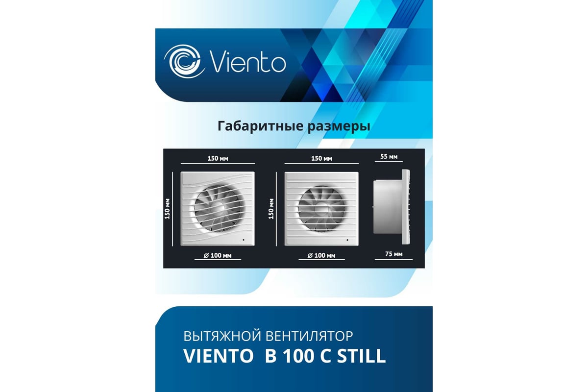 Осевой вытяжной вентилятор ВИЕНТО малошумный В100С STILL применяется для постоянной или периодической вытяжной вентиляции бытовых помещений.
