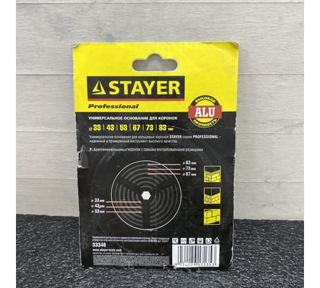 Отзывы об основании-державке STAYER PROFESSIONAL для кольцевых коронок 33345-xx 33346