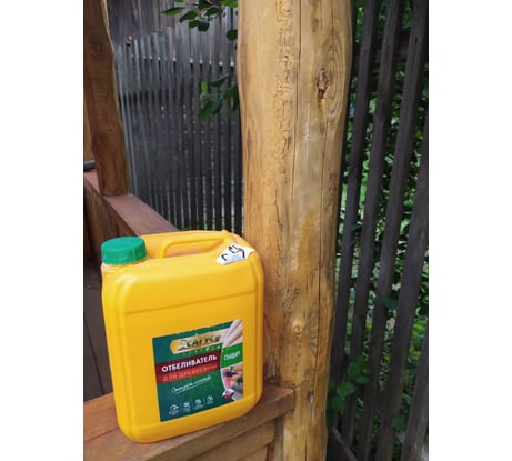 незакрытый сруб потемнел и стал покрываться белой плесенью, решил попробовать данный отбеливатель, после нанесения на сруб уже через двадцать минут сруб стал как новый а от грибка даже следа не осталось, прошел год а сруб в том же чистом состоянии, очень доволен.
