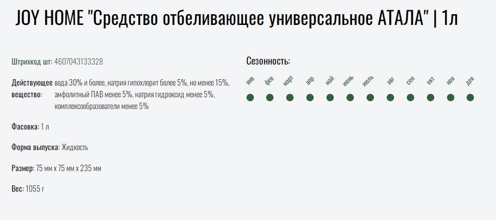 Отбеливающее универсальное средство Joy 1 л 4607043133328 подходит для изделий из хлопчатобумажных, льняных, вискозных и синтетических тканей