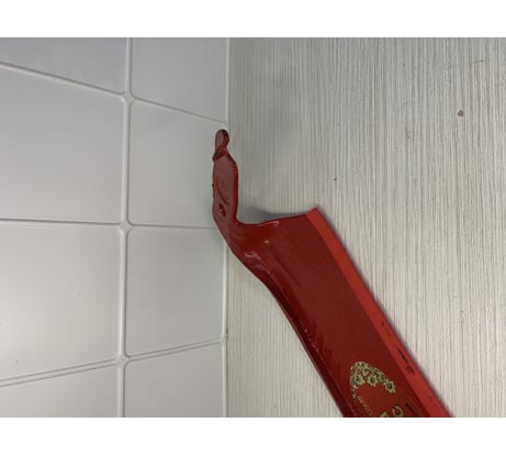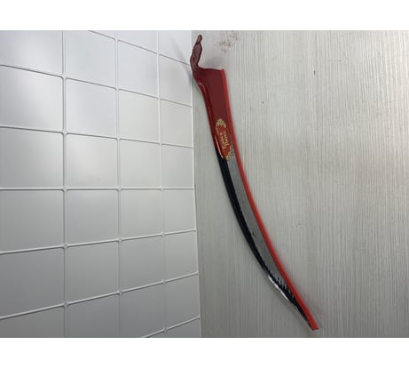 Отбитая и заточенная - это неуместная шутка производителя (к магазину претензий нет). Толщина режущей кромки - 1 мм. Для придания ей желаемой формы пришлось долго отбивать. Шип на пятке сломался на 15-й минуте работы. Как вышел из положения - видно на фото. В принципе, после доведения до ума коса свою работу делает, траву режет неплохо. Только за это 4 звезды (правда, с большой натяжкой). С другой стороны, сейчас ничего нормального на рынке нет. Единственная качественная альтернатива - советские косы, но их попробуй найди. P.S. Отличное косовище получается из сухой ёлки, легкое и прочное.