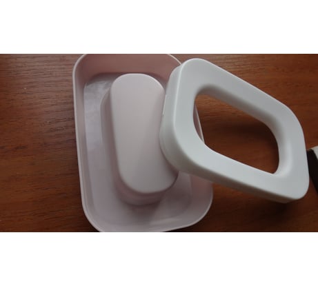 Матовый пластик не скользит в руках. Конструкция состоит из поддона и верхнего съемного элемента с отверстиями для отвода воды, что препятствует размоканию мыла.