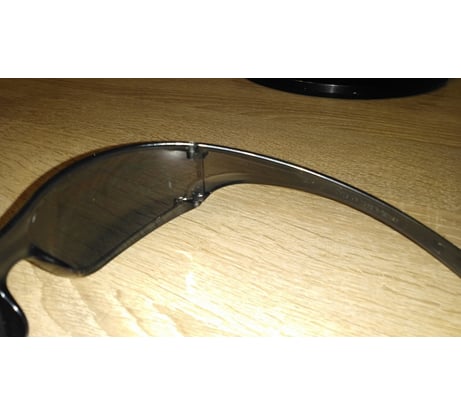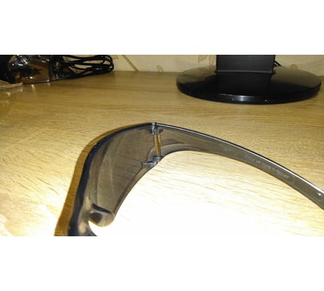 Дужки длинноваты и выполнены из того же материала, что и очки. Кажутся хрупкими. Посмотрим. На переносице нет резинок. Из-за легкости вроде не давят. Опять же резинки не будут слетать. Цвет позволяет использовать и на солнце и при пасмурной погоде. В сумерках пока не пробовал. Надеюсь на надежность 3М. Если будут сильно царапаться, то дороговаты. Брови не защищают. И так приходится периодически поправлять - сползают. Сильно потеют.
