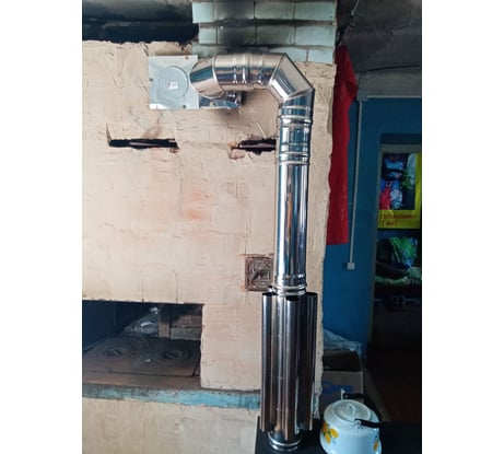 Обогрев кирпичного дома в весенне-осенний период. Дымоход вывел через отвод русской печи.