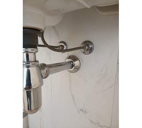 Устанавливали на хромированную 32 трубу от сифона под раковиной. Раструб 50 канализационной трубы перекрывает.