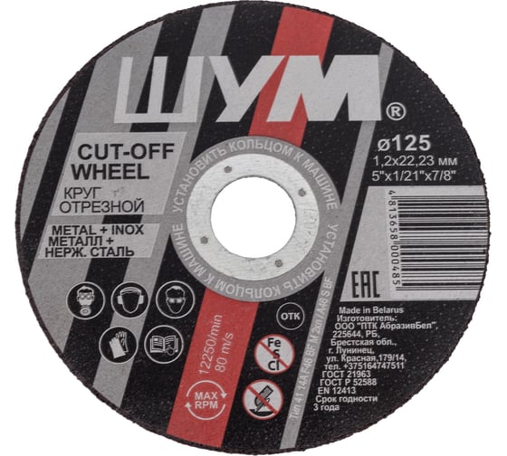 Отрезной, абразивный круг ШУМ 125x1.2x22.23 (50 шт) 125122221