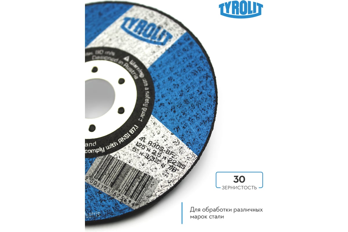 Отрезной армированный круг Tyrolit на бакелитовой связке, 125x2.5x22.23, A 30 S BF, T-41 TRL0-036-7569 TRL0-036-7569K