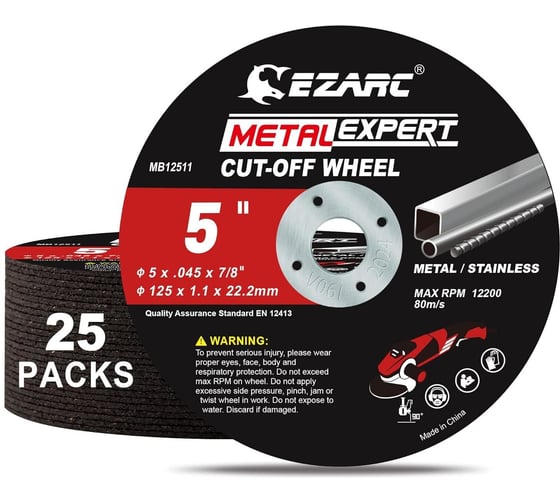 Отрезные круги Ezarc 25шт, 125мм, по металлу и нержавеющей стали для ушм 80925011