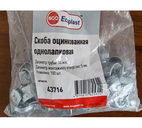 Вопросы и ответы об оцинкованной скобе для трубы Экопласт с одним отверстием D16 мм 100 шт. 43716