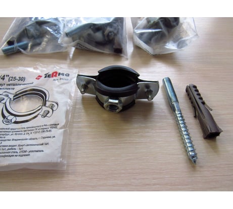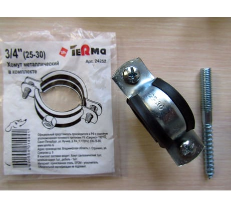 Хомут из оцинкованной стали с резиновым уплотнением 1" 32-37 мм с гайкой М8, в комплекте со шпилькой-шурупом и дюбелем. TeRma 24253 применяется для крепления труб различного назначения. Трубные оцинкованные хомуты с шурупом и дюбелем торговой марки TeRma изготовлены из качественной оцинкованной стали, обеспечивают надежное крепление и имеют длительный срок службы. В качестве уплотнителя используется высококачественная резина EPDM, которая обеспечивает идеальную шумоизоляцию. Оцинкованные хомуты с шурупом и дюбелем имеют длительный срок службы, пригодны для многоразового использования.