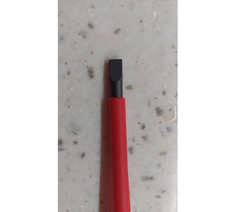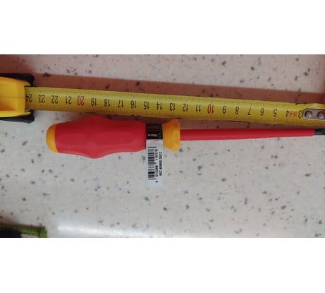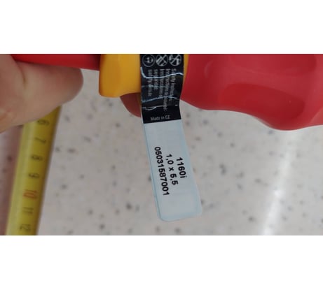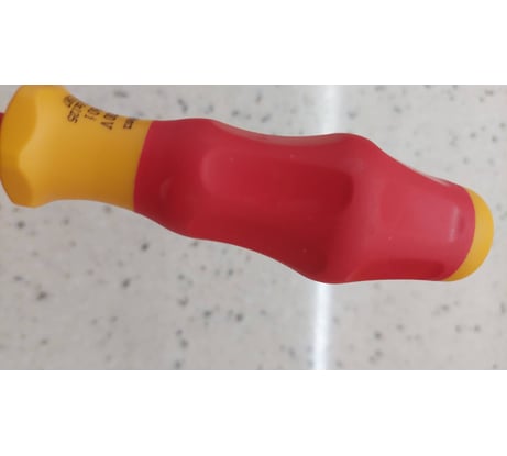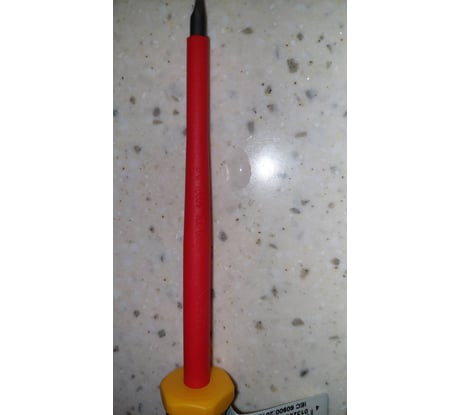 Продуманная ручка: жёлтая часть это пластик, красная это резина. За счёт красной резины создаётся хороший момент при закручивании. Есть обозначение шлица как на самой ручке с боку, так и на верхней части (гравировка с залитием краски, должно долго прослужить). Жало удлиненное и с гальвонопокрытием.