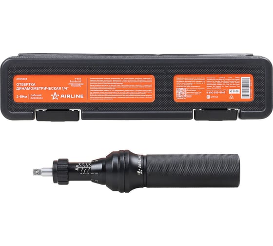 Отвертка динамометрическая Airline, 1/4", 2-8 Нм, в кейсе ATBN304