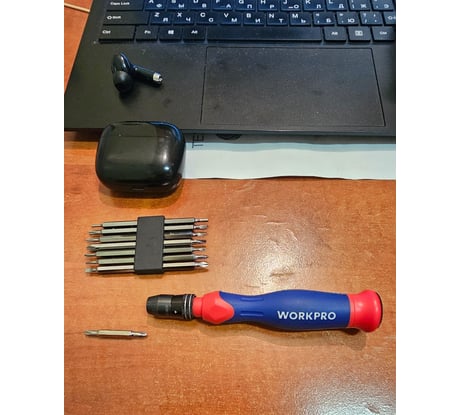 Отличная отвертка для бит 4 мм. Рукоятка прорезинена, биты из стали S2, механизм фиксации бит - на трех шариках, биты держит очень крепко. Люфт небольшой. Биты 4 мм подходят любой длины, как длинные, так и короткие. Этот набор брал в дополнение к похожей отвертке Licota, у которой все хорошо, кроме не очень комфортной рукоятки при длительной работе. У рукоятки Workpro с эргономикой все в порядке, очень удобная.