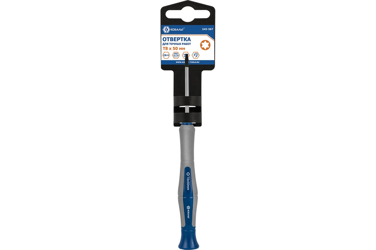 Отвертка для точных работ T8 х 50 мм CR-V,подвес КОБАЛЬТ Ultra Grip 245-367