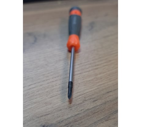 По факту: Общая длина 154мм, длина стержня 60.5мм. Толщина (диаметр) стержня 3мм, диаметр наконечника 2.55мм, длина наконечника 9мм. Вес 15.28г. Наконечник чуть больше, чем PH00 (как-бы PH00.2; у меня есть эталонные биты), по факту садится в шлиц туго, хотя это лучше, чем свободно. Намагниченность есть. Ручка слегка пованивает, пятка вращается, конструктив соответствует фотографии сайта.