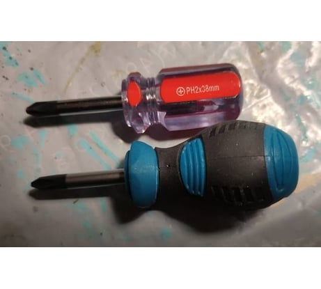 Эта отвертка хороша тем, что у нее короткая ручка, поэтому она очень короткая вся. При этом ручка довольно ухватистая. У большинства других подобных отверток ручка длиннее, массивнее, подлезать в тесные места ими будет проблематичнее. На фото видна разница в компактности этой и другой, с аналогичным стержнем 38мм.