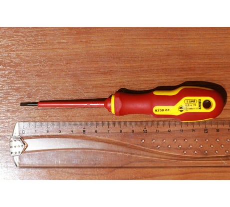 Длина неизолированной части жала отвертки 15 мм, для большинства клеммников хватило бы и 10 мм.