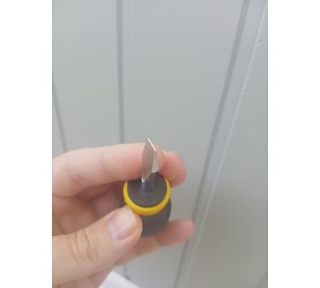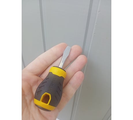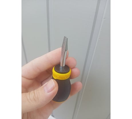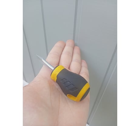 Достаточно толстый шлиц, только под большие саморезы и шурупы. Качество материала среднее. Благодаря габаритам можно подлезть в труднодоступное место.